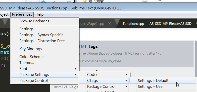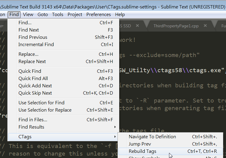 Find ->CTags -> Rebulid CTags ->"選擇檔案路徑"