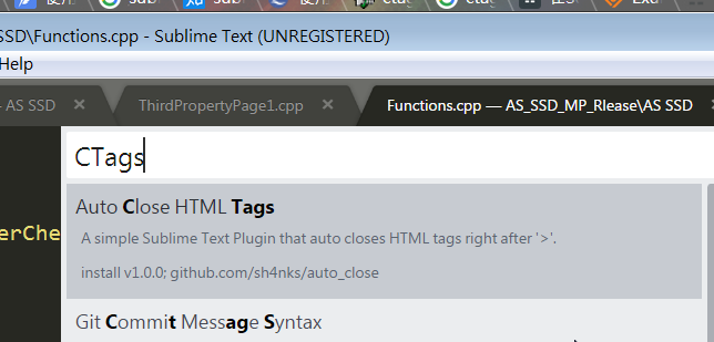 Preferences -> Package control -> Install Package- Ctags